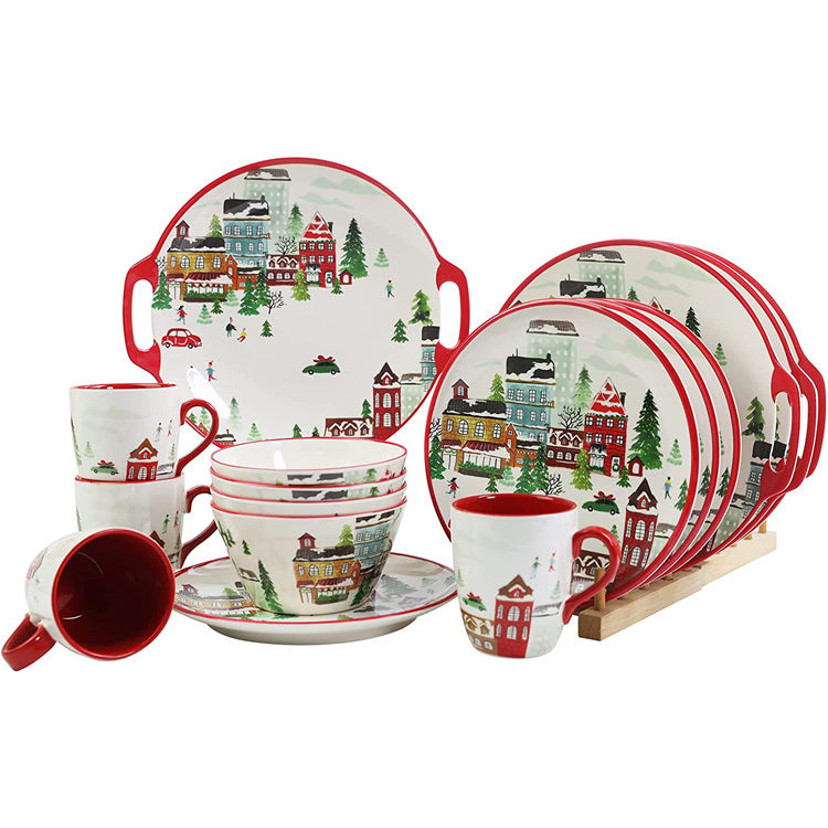 Service de vaisselle en mélamine de Noël léger 16 pièces