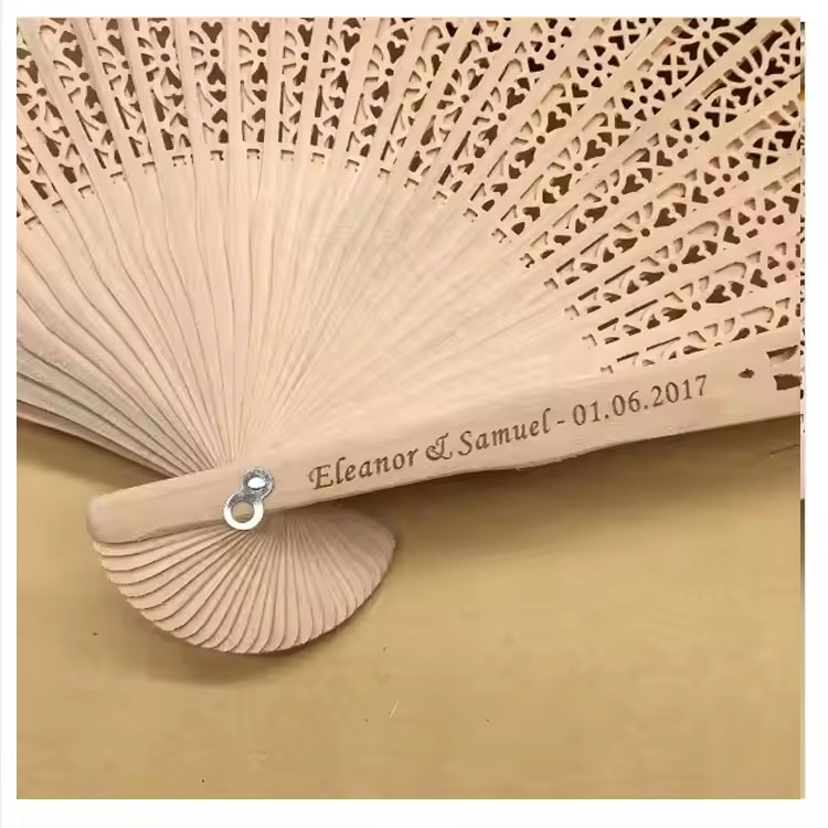 Personnalisez l'éventail avec vos noms, la date de l'événement, votre logo ou un message significatif grâce à une impression de haute qualité ou une gravure laser. Un souvenir réfléchi et durable pour les invités ou les clients, conçu pour correspondre au thème ou à l’identité de marque de votre événement.