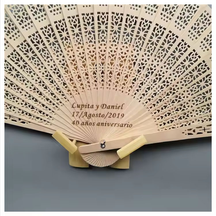 Éventail à main pliable en bois pour cadeau d'anniversaire vintage en bambou. Éventail à main en bambou gravé sur mesure — élégant, pliable et léger avec un charme vintage. Idéal pour les mariages, les fêtes ou les événements culturels. Personnalisez avec votre logo ou message pour un cadeau décoratif intemporel et pratique.