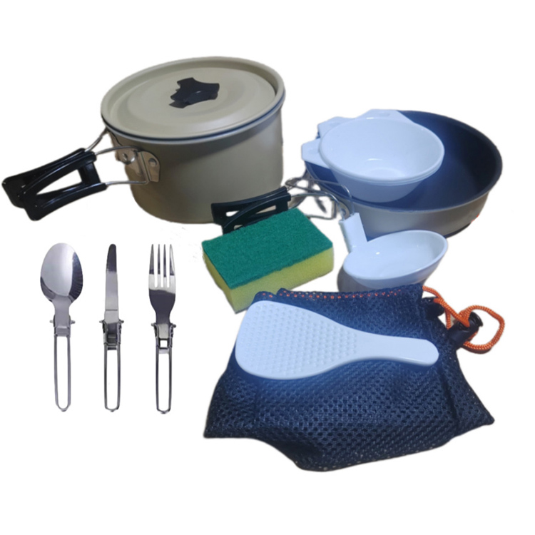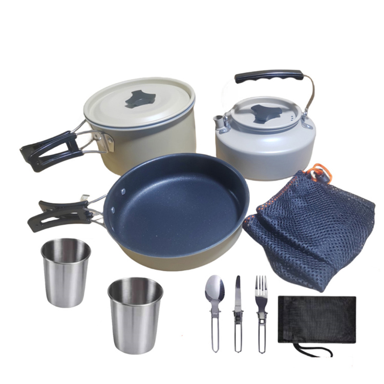Batterie de cuisine de Camping avec bouilloire, ensemble de marmites portables