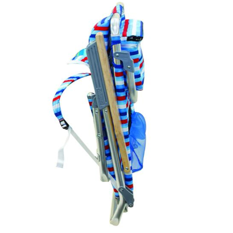 Chaise de plage d'extérieur classique pliable à plat de style sac à dos. Mobilier d'extérieur compact et léger avec un design rayé. Fabriqué à partir d'aluminium métallique luxueux pour un confort durable. Idéal pour les sorties à la plage et les pique-niques. Disponible dans les couleurs classiques rouge, blanc et bleu.