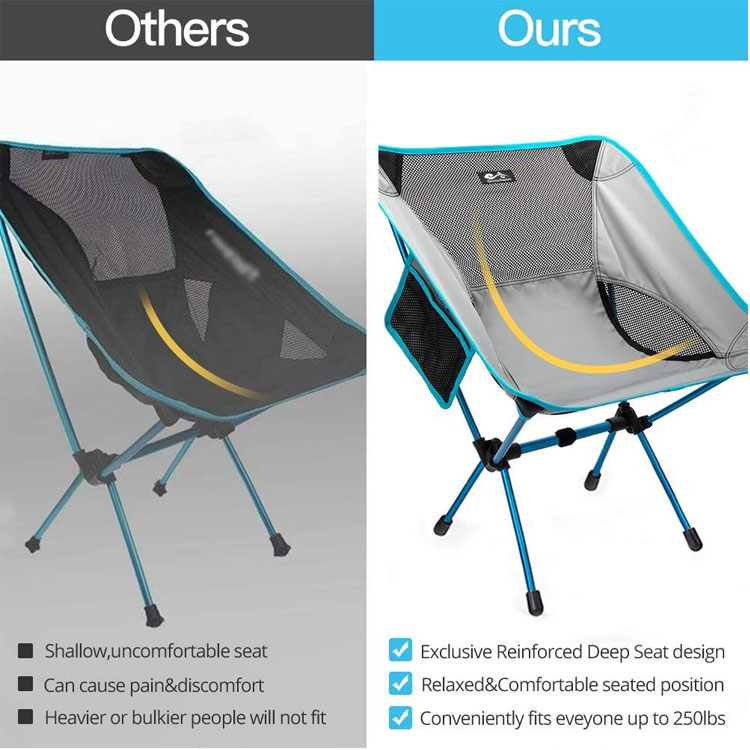 ✅Ultra-léger et adapté aux voyages –Prenez du confort n'importe où ! Cette chaise pliante portable est conçue pour être incroyablement légère, ce qui en fait le compagnon idéal pour le camping, la randonnée, la randonnée ou les sorties à la plage. Facile à transporter sans ajouter de volume.
