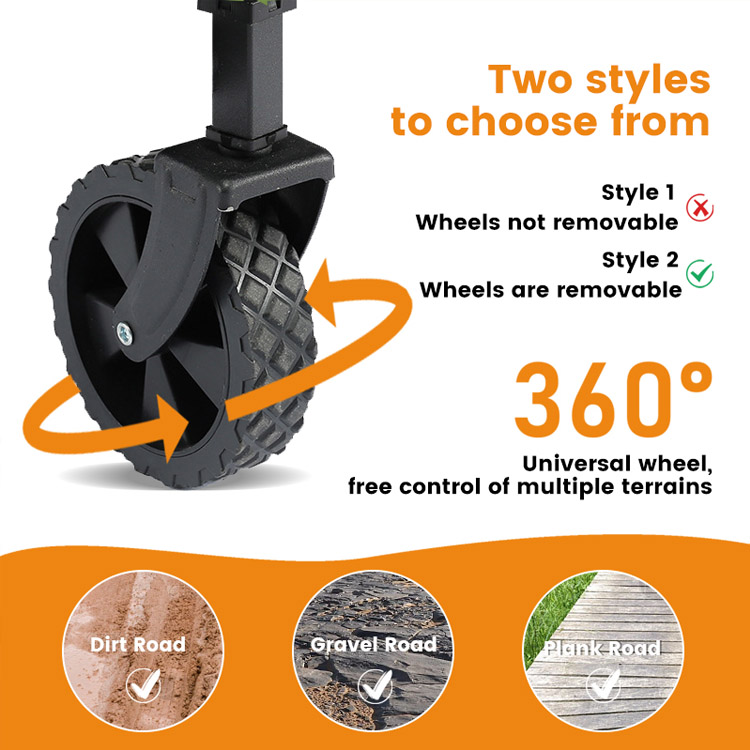 Construit avec un cadre en fer renforcé et un revêtement antirouille, ce chariot utilitaire maintient une durabilité exceptionnelle tout en supportant des charges jusqu'à 150 kg, offrant des performances fiables sur divers terrains.