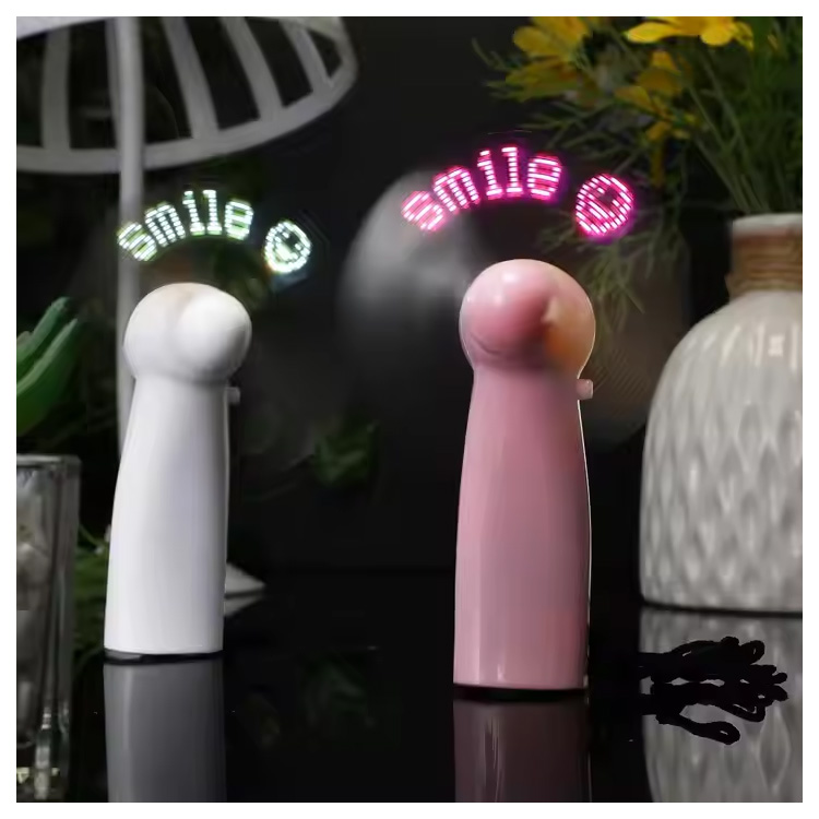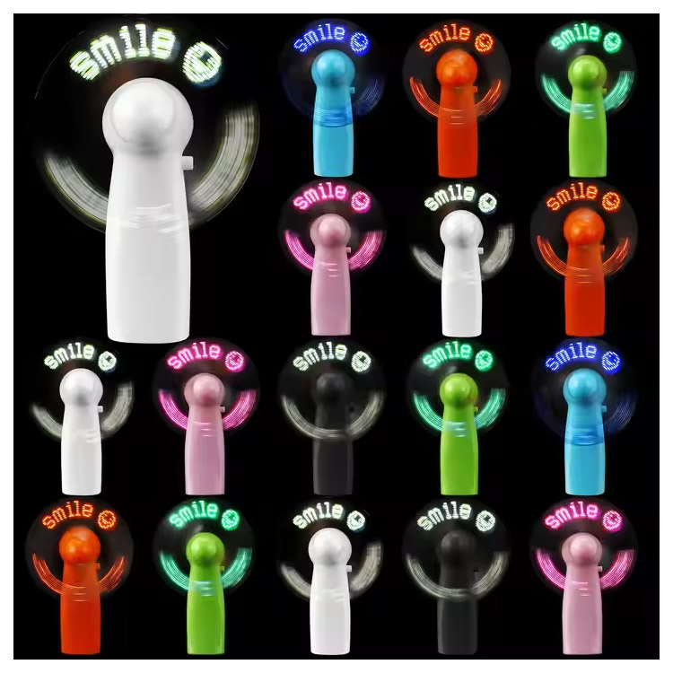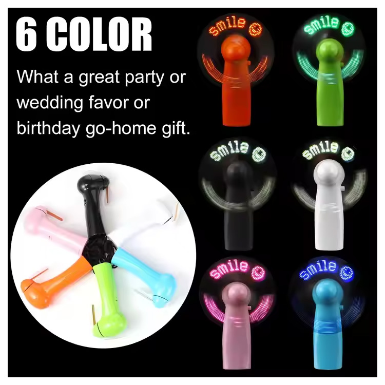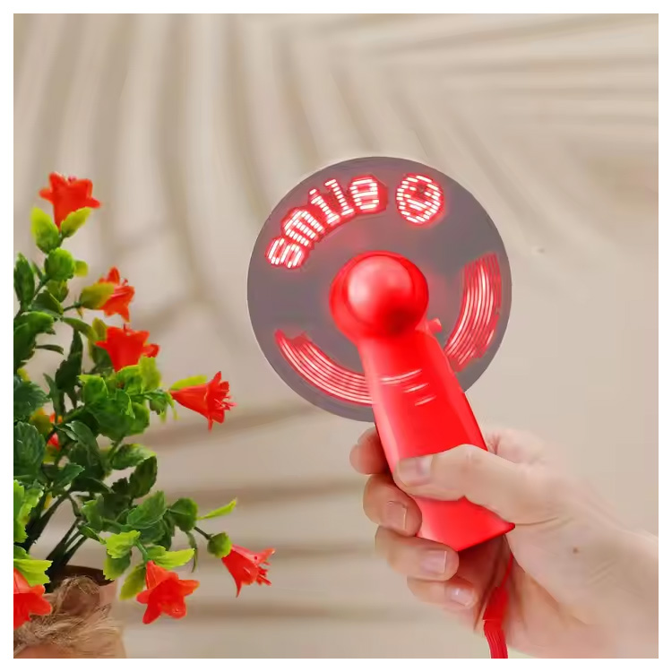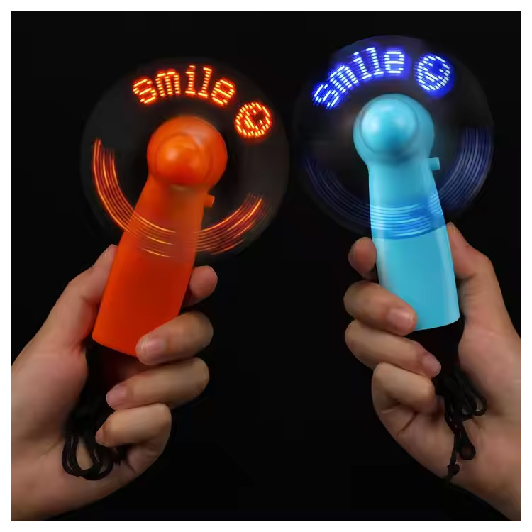 Nouveau Mini ventilateur portatif pratique de batterie de Message personnalisé de LED. Mini ventilateur portatif de Message de LED— Compact, alimenté par batterie et personnalisable avec du texte défilant. Offre une brise fraîche tout en affichant votre marque ou votre message dans des lumières LED lumineuses. Parfait pour les événements, les fêtes ou les cadeaux promotionnels.