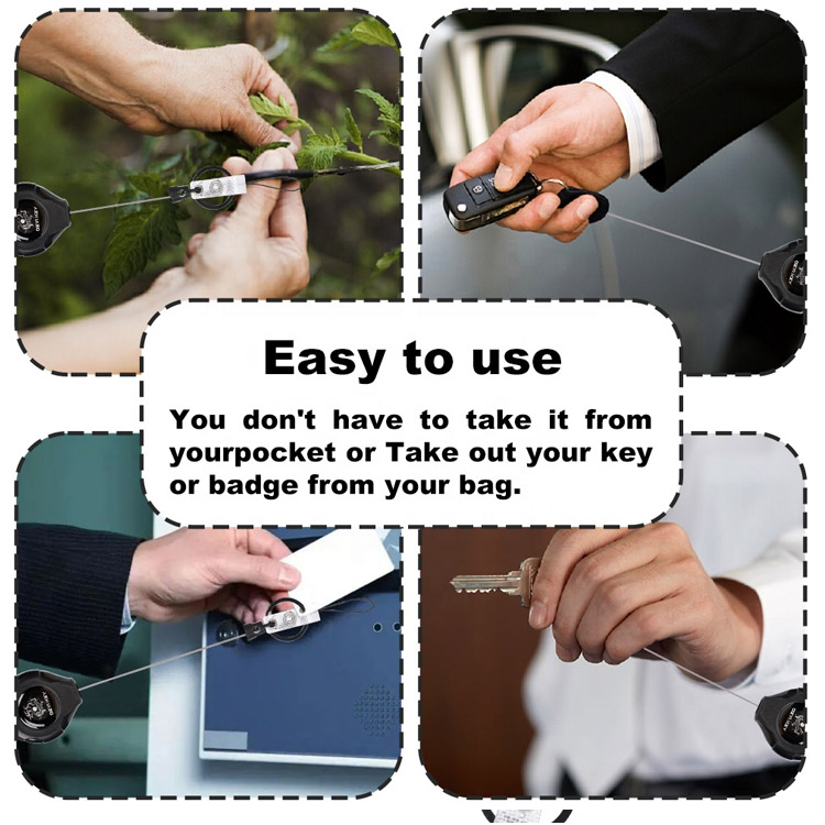 Comprend une corde en nylon durable de 80 cm avec un mécanisme rétractable lisse qui permet une extension confortable tout en évitant les enchevêtrements, gardant vos clés en sécurité et accessibles pendant les activités de plein air.