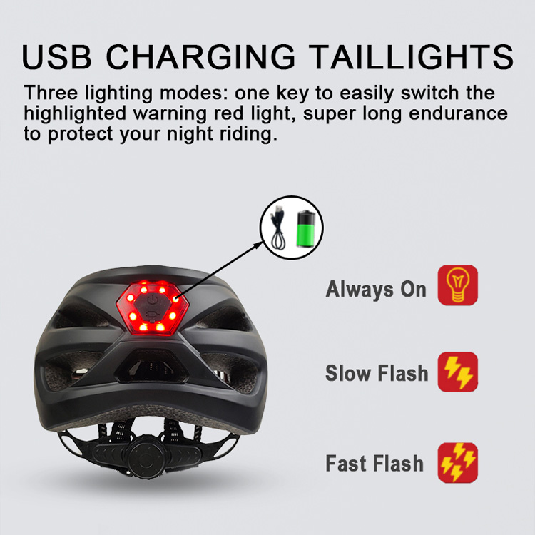 Casque de vélo de route de sécurité respirant avec feu arrière rechargeable