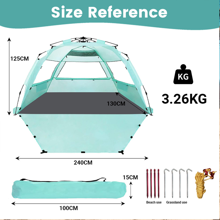 En tant que fournisseur de fabrication professionnel, nous aimerions vous fournir BEST-HOME. Tente de plage pare-soleil en polyester ultraléger en vrac en gros. Le produit est exporté depuis longtemps vers l'Europe, l'Amérique du Nord et le Moyen-Orient. En tant qu'usine, nous pouvons garantir un délai de livraison précis et le meilleur service après-vente, et la qualité de nos produits est reconnue par les clients du monde entier.