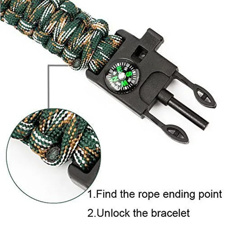 En tant que fournisseur de fabrication professionnel, nous aimerions vous fournir BEST-HOME. Gros échantillon de bracelet de paracorde tactique de survie de 550 LBS. Le produit est exporté depuis longtemps vers l'Europe, l'Amérique du Nord et le Moyen-Orient. En tant qu'usine, nous pouvons garantir un délai de livraison précis et le meilleur service après-vente, et la qualité de nos produits est reconnue par les clients du monde entier.